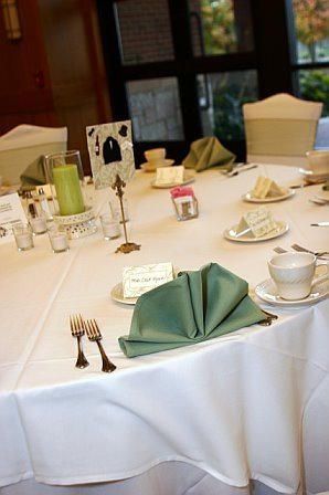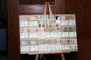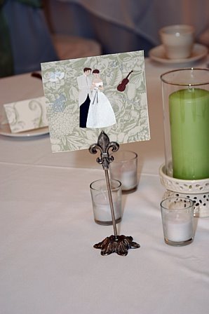 {I used various stickers to decorate table numbers- I stamped the numbers in gold on the opposite side, I made name cards as well to place on the smaller plates.}