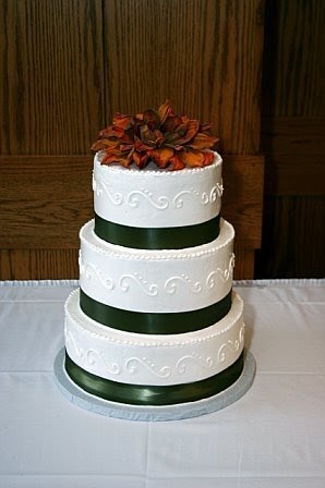 { I bought the flower for the cake and the ribbon at Michael’s and asked the baker to use them on our cake- cool huh?}