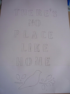Took some old scrapbook paper, measured it to fit- and began with my plastic stencils.