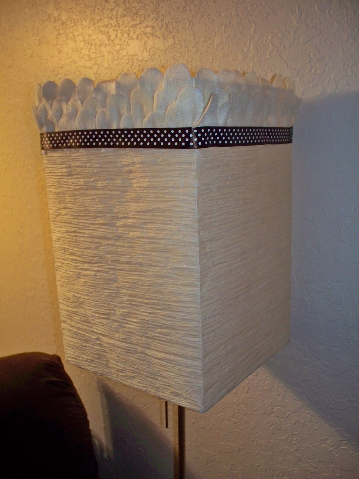 Well, yesterday I wanted to do a little something to spruce up my lamp. A skirt to make her a bit cuter I thought. So I cut individual flower petals from some scrap felt I had, and used my handy-dandy glue gun to adhere them on. But, when I went to place the shade back on the lamp, this is what happened.