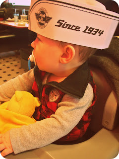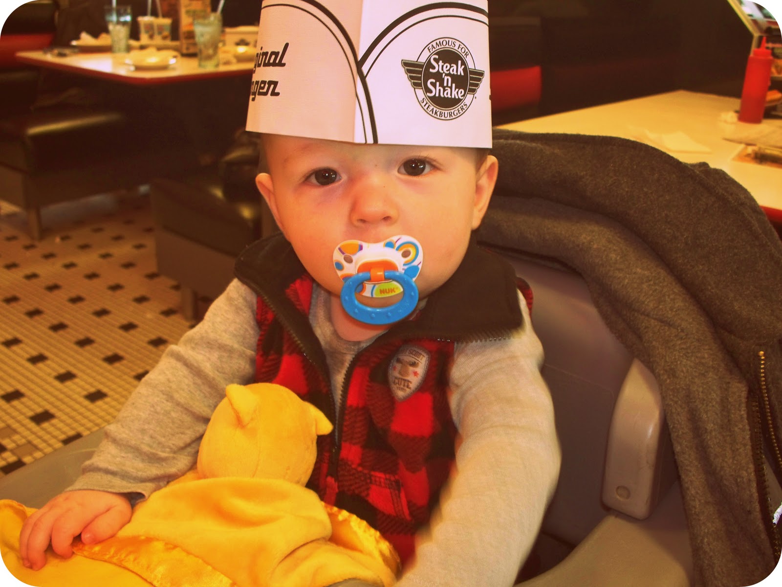 After we made our visit we went out to lunch together at Steak n’ Shake. If you’ve never been there, or never heard of it- you’re missing out. They have delicious, well… steaks (burgers) & shakes. Wyatt even wore a paper hat, which made the day a lot better because he was just so stinkin’ cute in it!