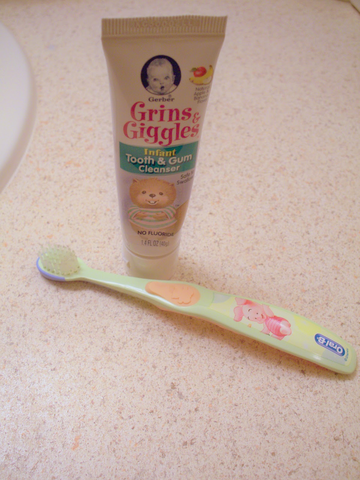 An itty-bitty tube of toothpaste with an itty-bitty Piglet toothbrush.