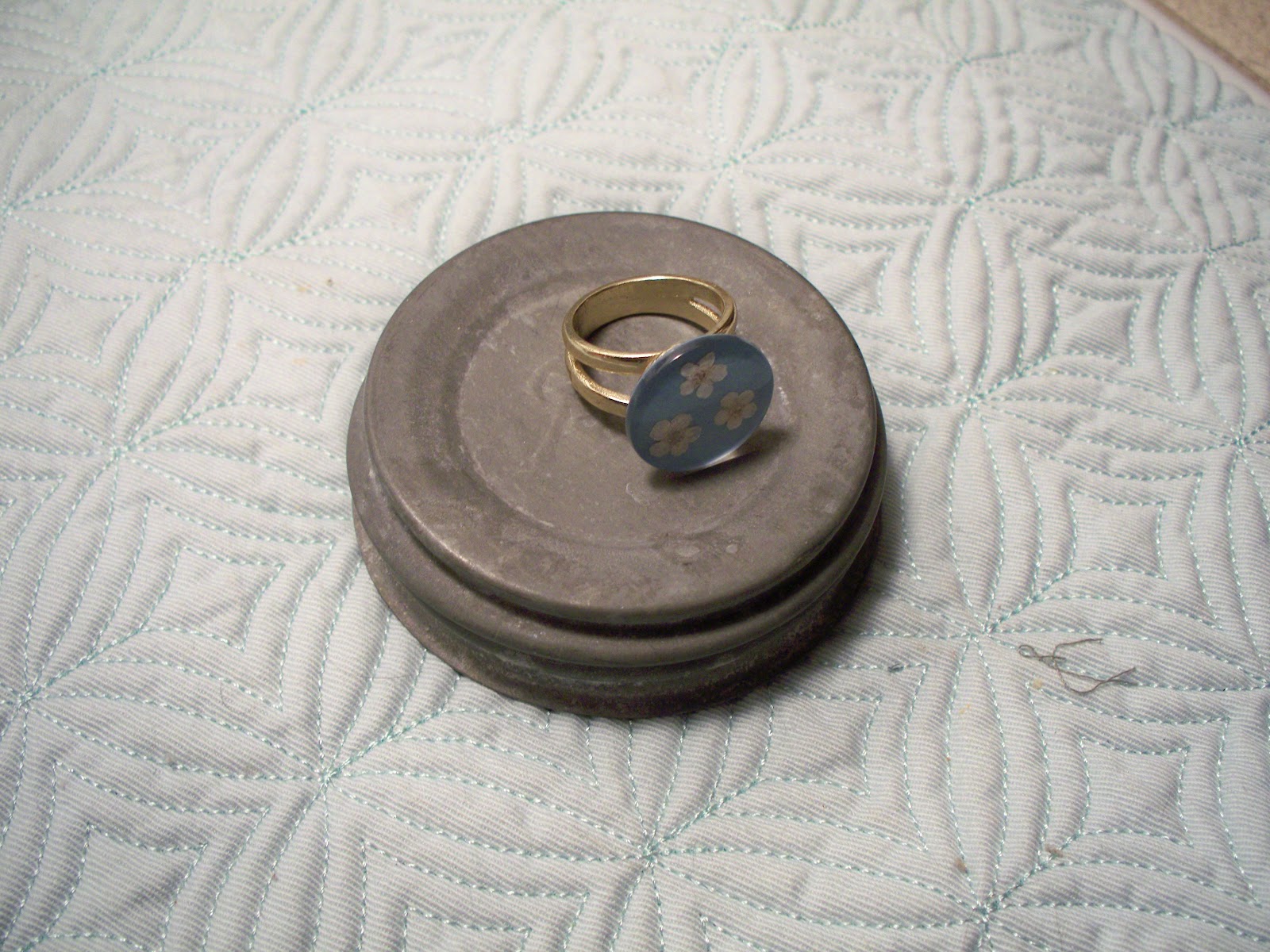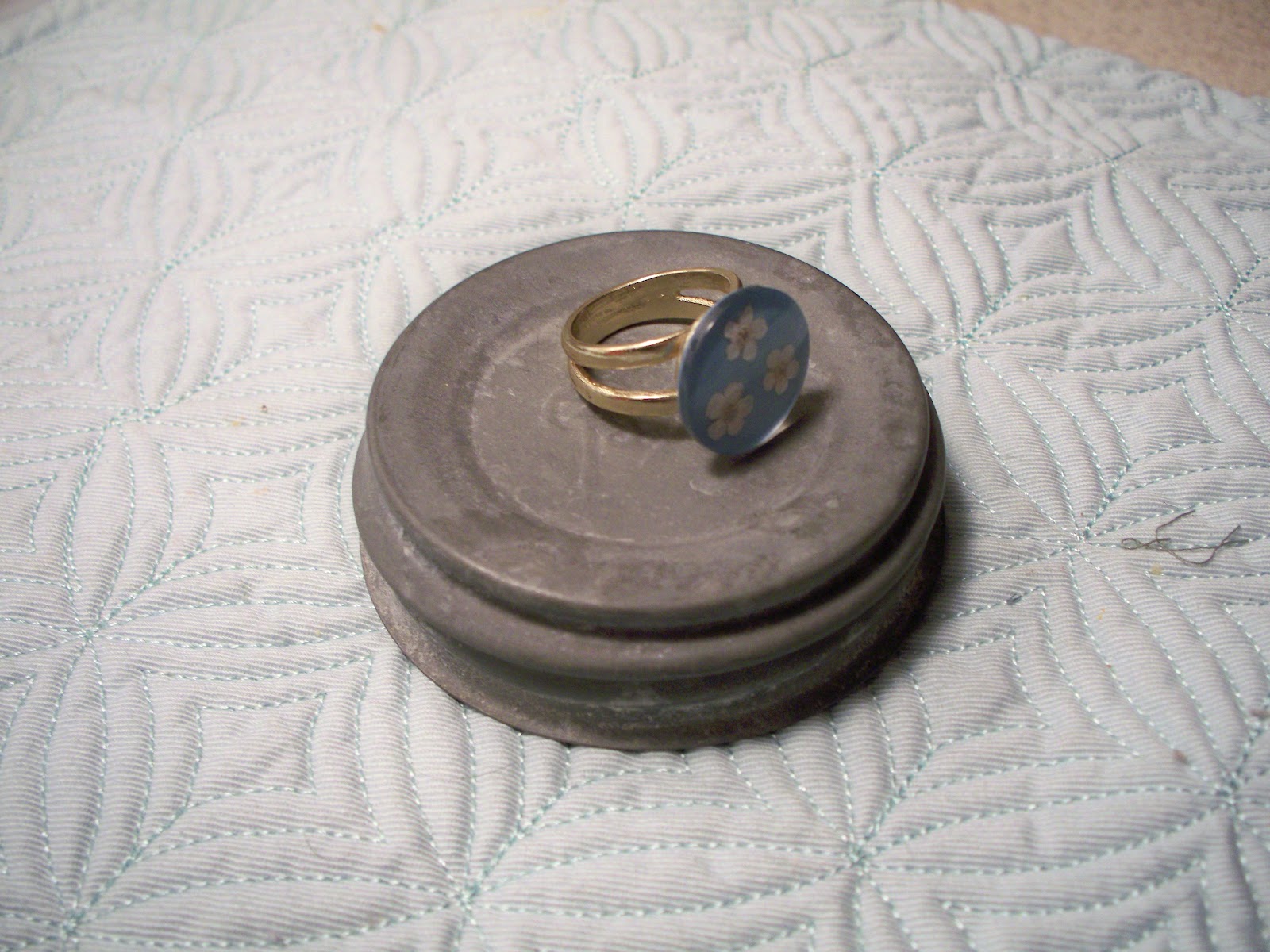 I used Krazy glue to adhere the button to the ring base.