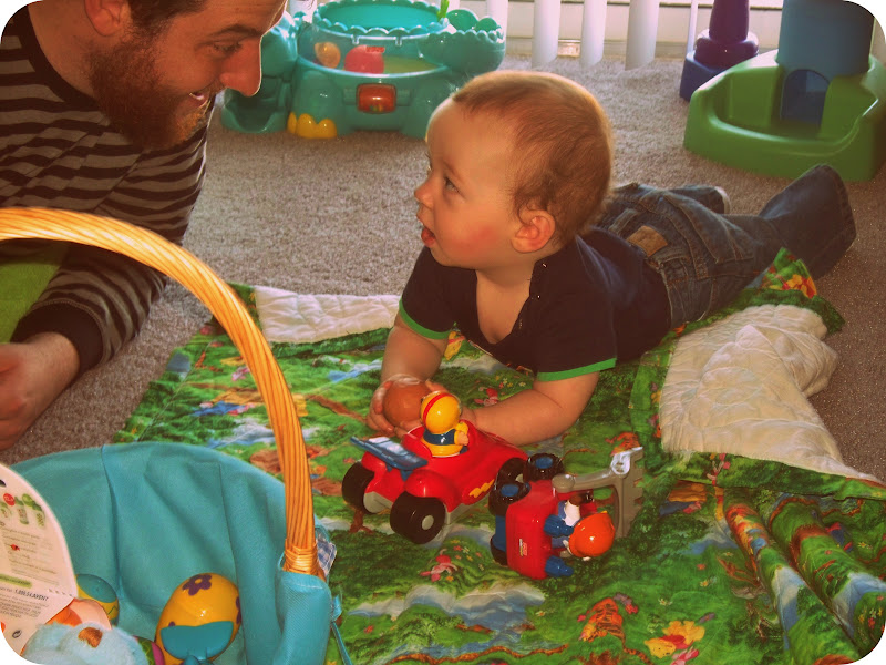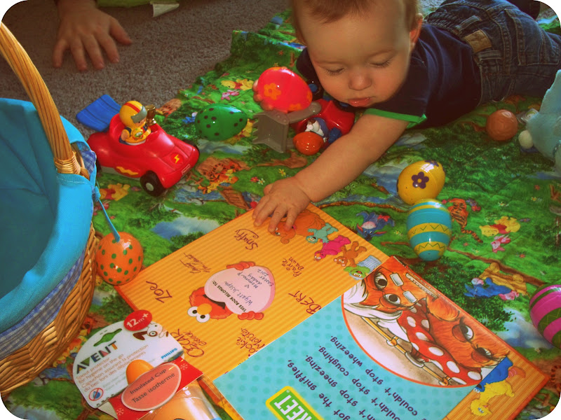 Mr. Wyatt sure is a cutie! And looks like he scored with his Easter basket too! That book looks adorable! I think I need to get that for our little guy!