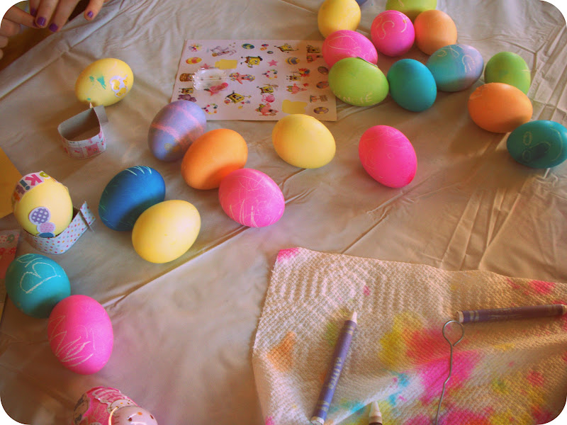Dyed eggs with his cousins Brady & Sydney ๐