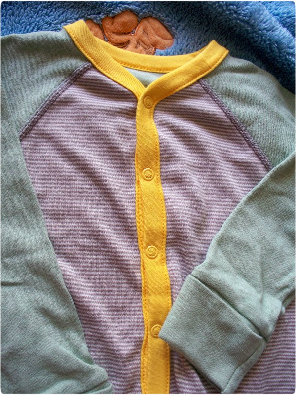 I love the color combination of the light green, grey stripes and yellow accents. When I first picked up the pajamas out of the box I couldn’t believe how great the fabric felt. It was so soft and thick – this is the type of clothing that lasts forever – because it’s made really, really well.
