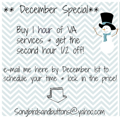 Hi everyone! Hope you’re having a great weekend! I just wanted to pop in and let you know about a little special I am running for my Virtual Assistant services! This is my way of saying thanks – and spreading some holiday cheer.