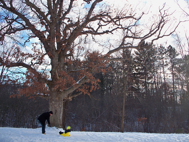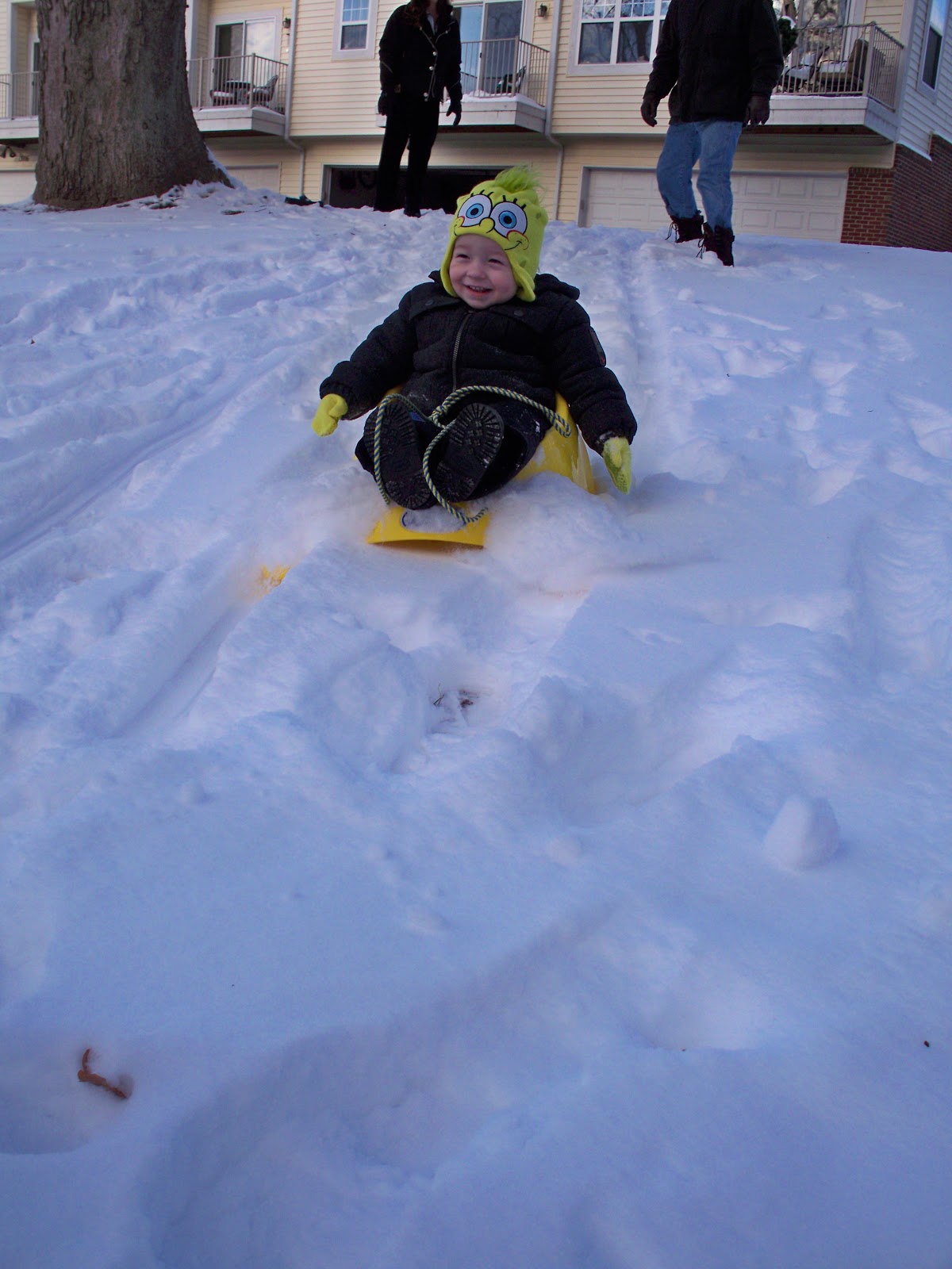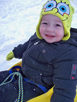 So Wyatt’s new favorite thing to do might be sledding. And that’s just fine by me because I absolutely love watching his face as he gets pulled around. Priceless. His Puppa has a perfect little spot in his backyard for such activities and we have been taking full advantage of that. Wyatt still isn’t sure what to think when he is standing in the snow, but we’re working on it. We’re hoping that within the next few days the snow will become more packable so we can create our first snowman together.