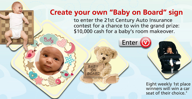 You may submit up to two versions of your Baby On Board sign as you would like. All winners must sign a release and must agree to have their pictures posted on 21st.com, the 21st Century Insurance Facebook page, and/or other 21st Century publications. All submissions must be received between December 19, 2012 and March 15, 2013 11:59PM EST. Winners will be notified via email. In order to enter the Baby Car Seat Giveaway, you must: