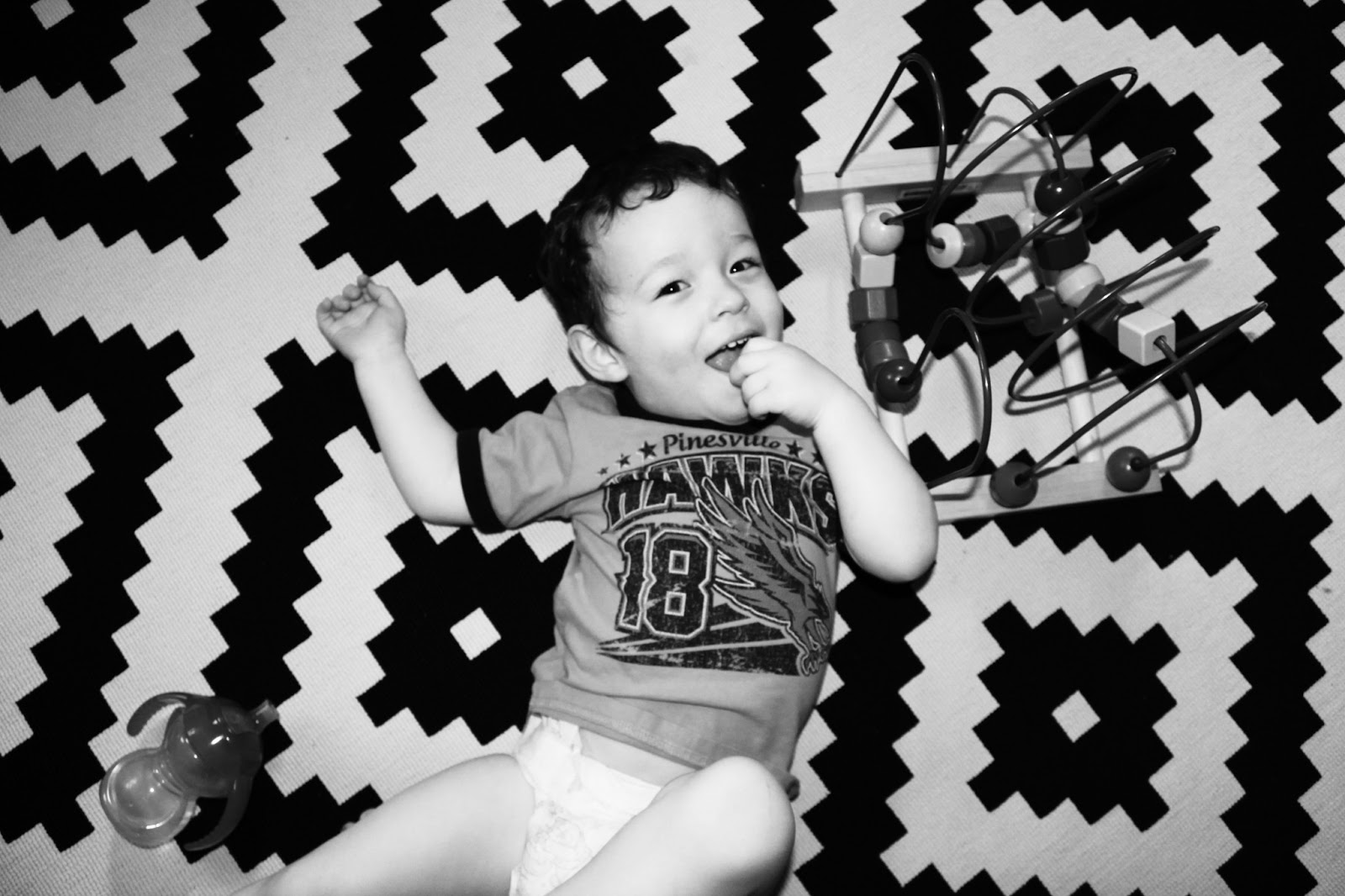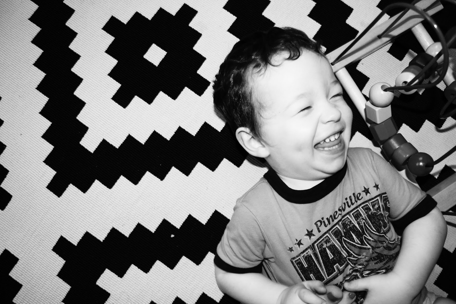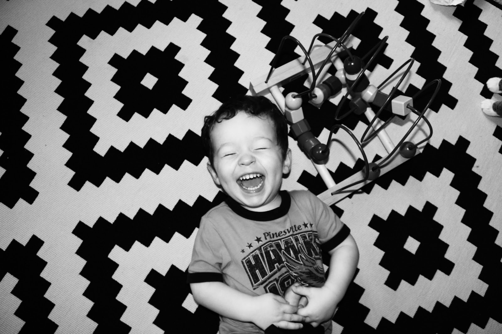 PS: In the picture I’m “squishing” him with my foot – I promise he likes it – and it almost guarantees a HUGE Wyatt smile ๐