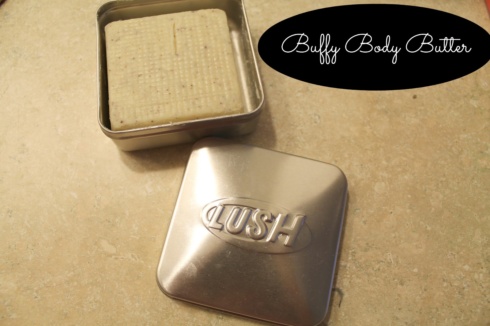 “Massage our Buffy body butter all over your wet skin in the bath or shower to make you softer and smooth to the touch, paying special attention to your backside. We add ground rice, almonds and beans to Buffy to act as exfoliants; the rough textures eliminate lumps and bumps and sloughs away dry skin cells to reveal brighter, fresher looking skin. Rinse off the exfoliating bits and pat yourself dry. There’s no need for body lotion after a Buffy slaying session, because the cocoa and shea butters keep your skin beautifully smooth, moisturized and soft to the touch.” – LUSH.COM